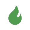 Icon of two hands, one holding a flame and the other holding a growing plant, representing environmental protection, sustainability and initiative.